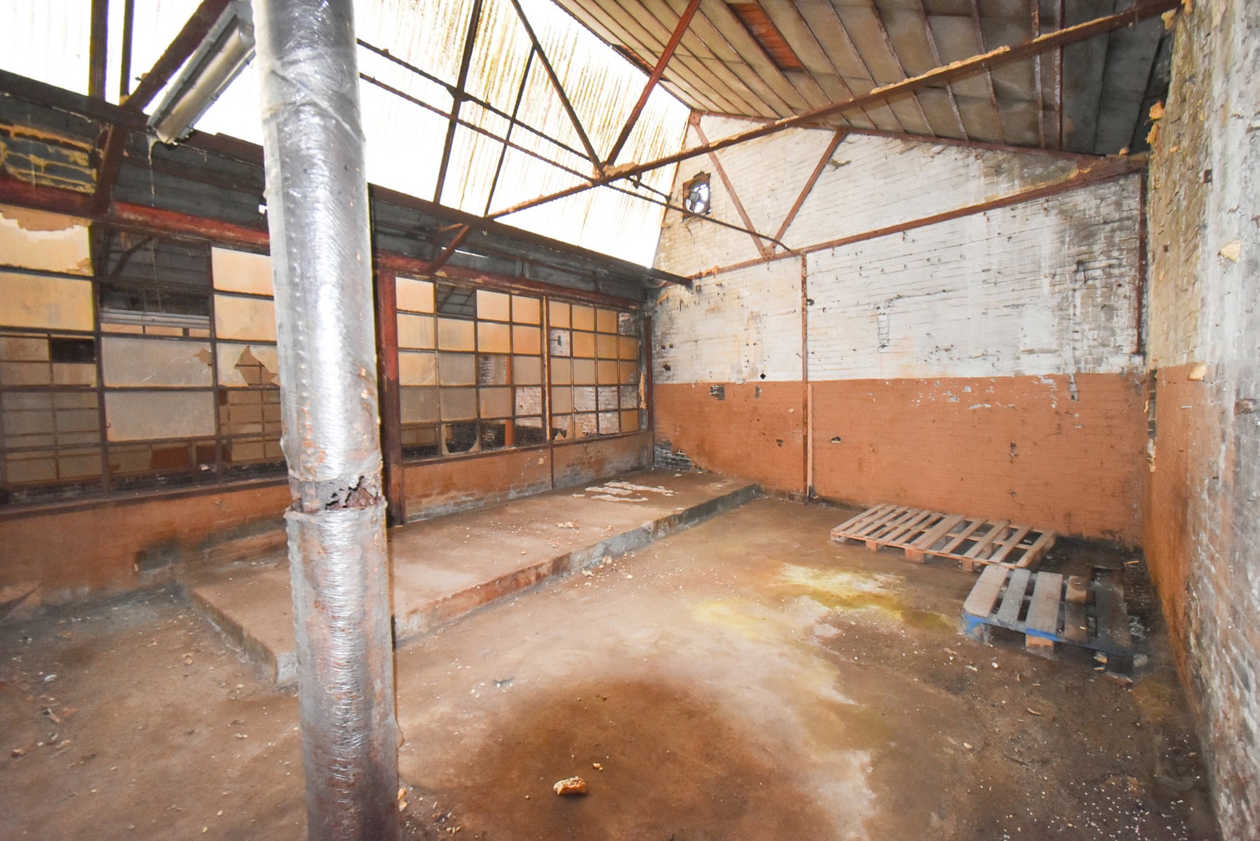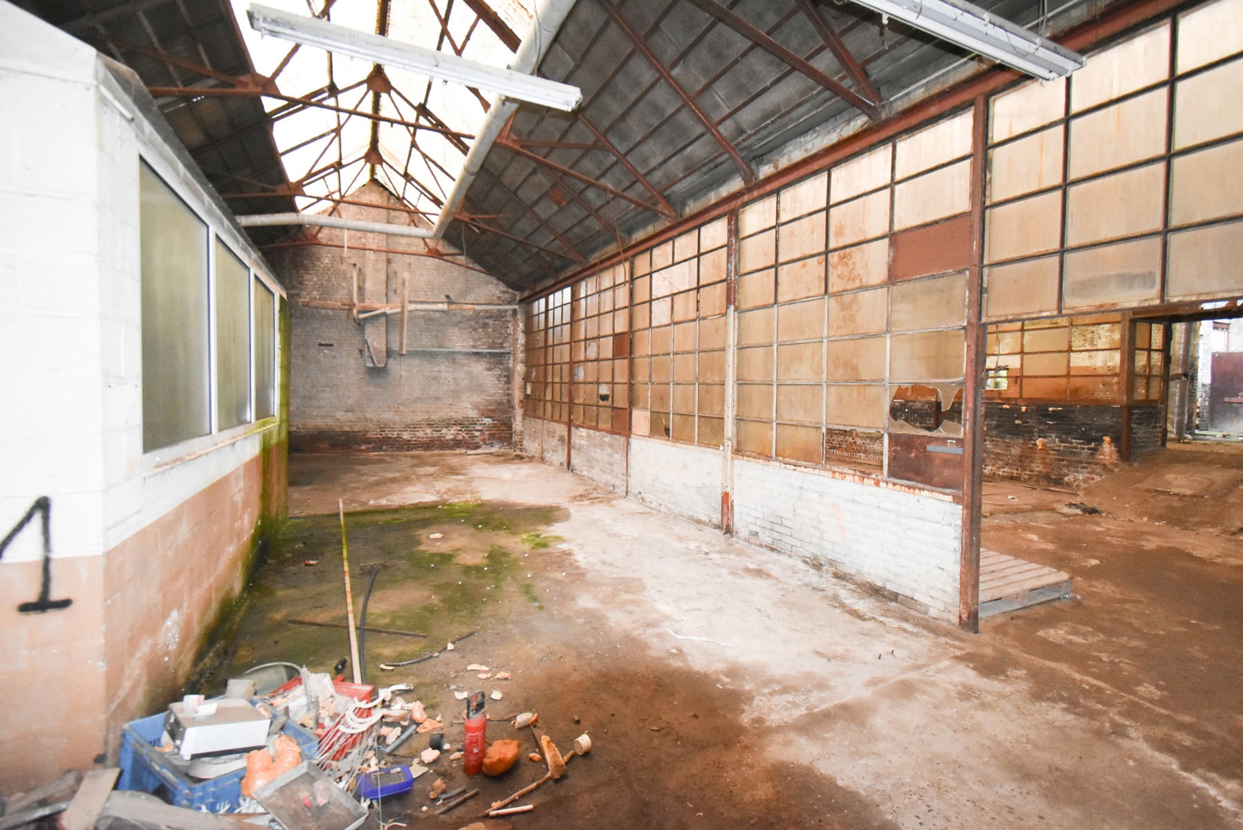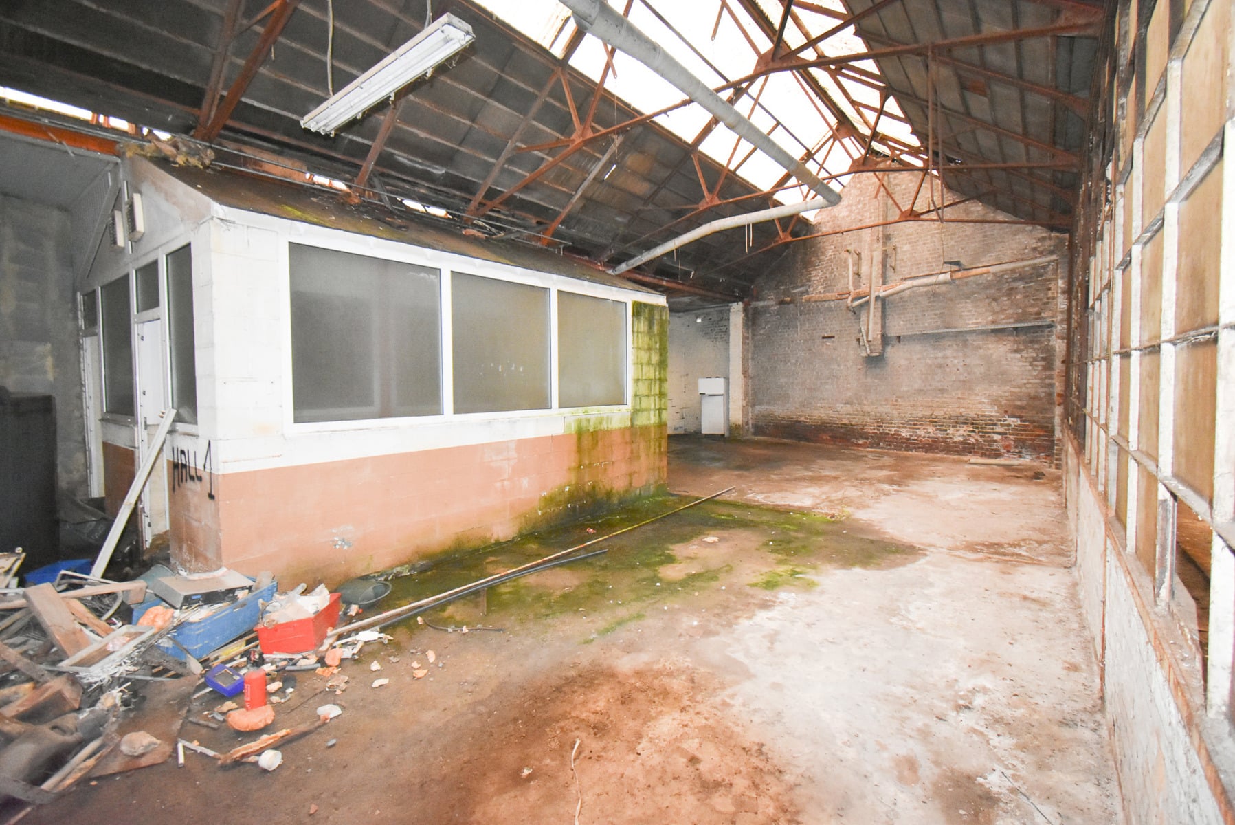 La partie bureau a été en partie rénovée : nouveaux châssis et nouvelle toiture plate.
